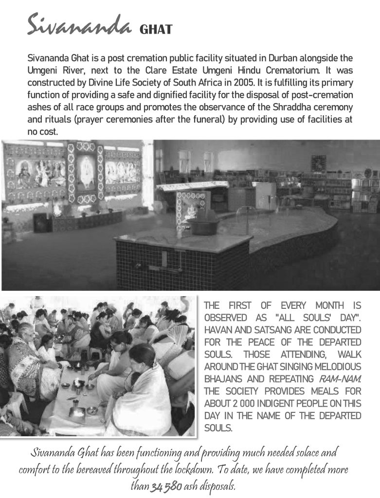 2005 Sivananda Ghat – Clare Estate Contribution to the construction of the Ghat , whereby one is able to deposit their ashes , or bid farewell to a loved one in a dignified, respectful & peaceful environment.